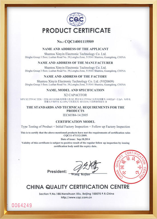X2产品CQC证书